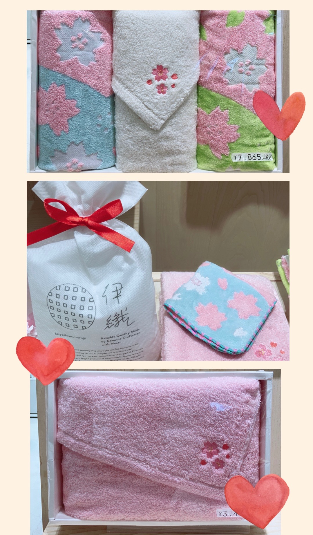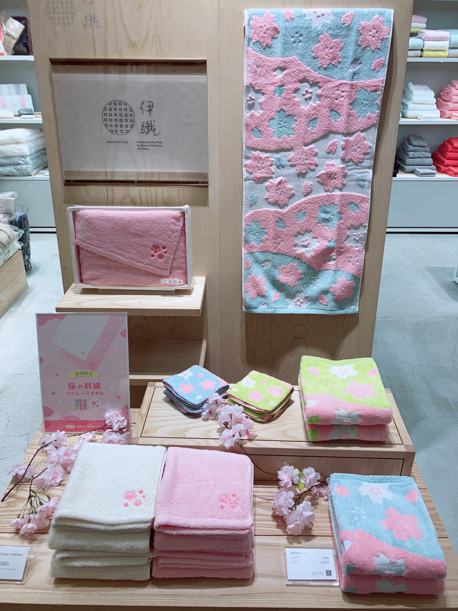 伊織ではいくつかの桜モチーフの今治タオルをご用意しております。
