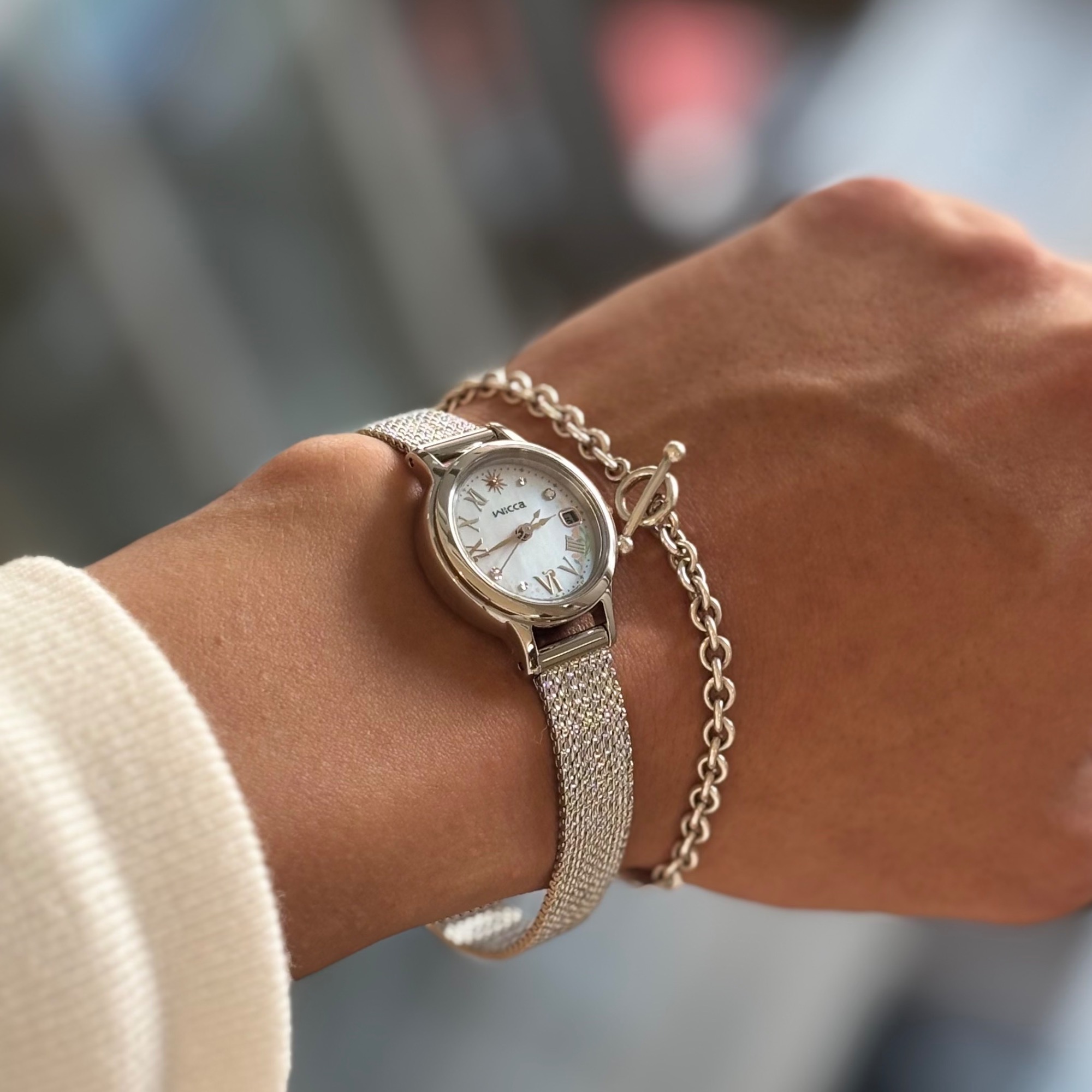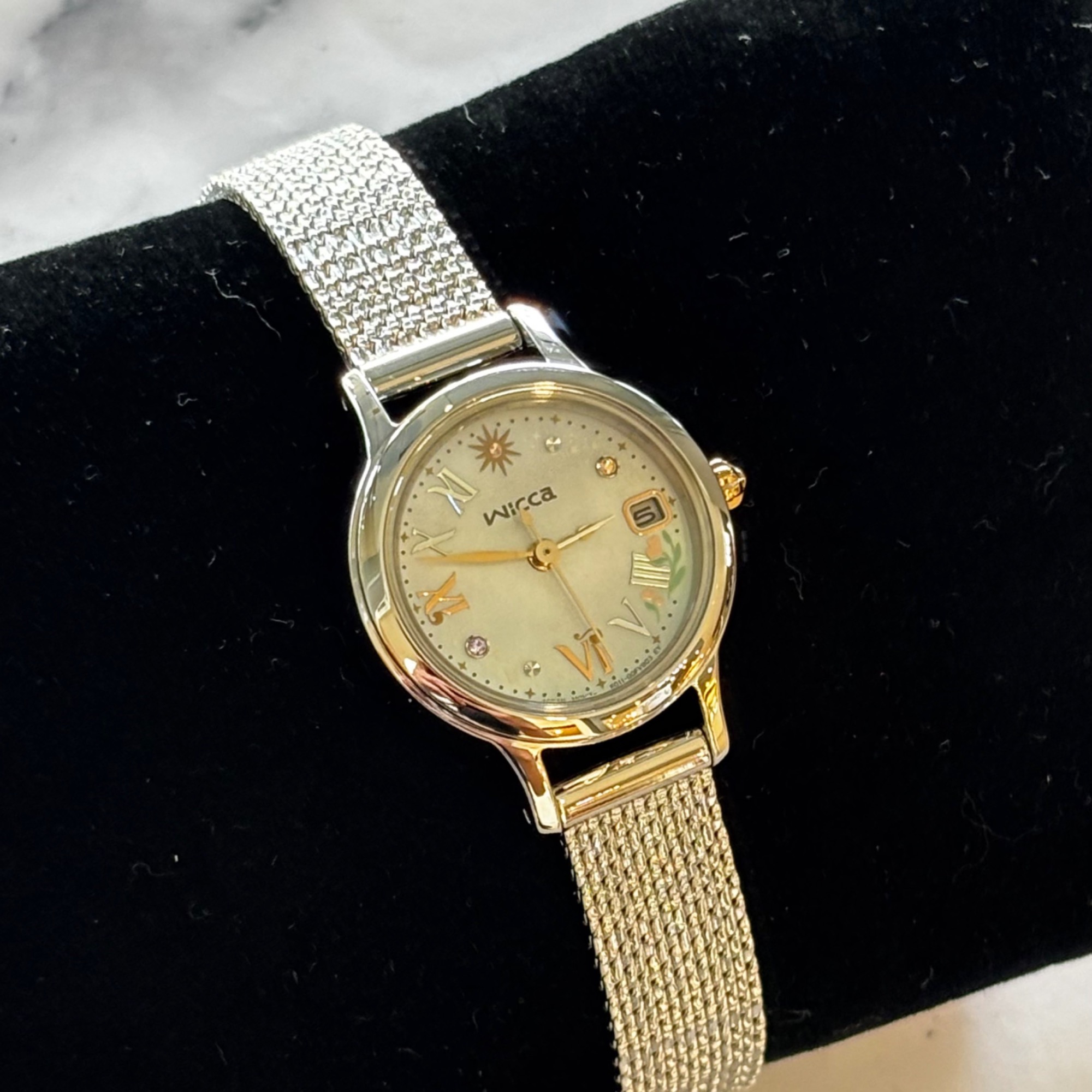 グリンダのドレスをイメージした白蝶貝の文字盤は華やかさと上品さを表現しています♪