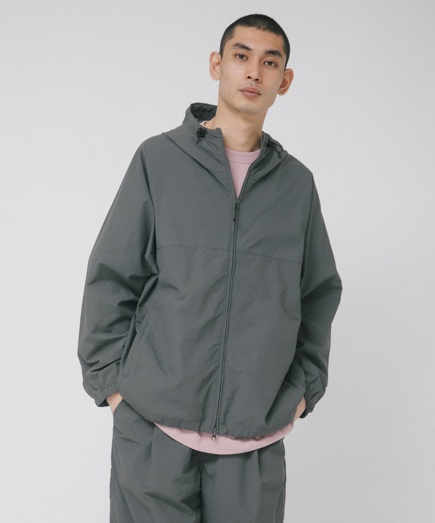 定番でご好評いただいているセットアップで着用可能な機能性ナイロンフーディ。