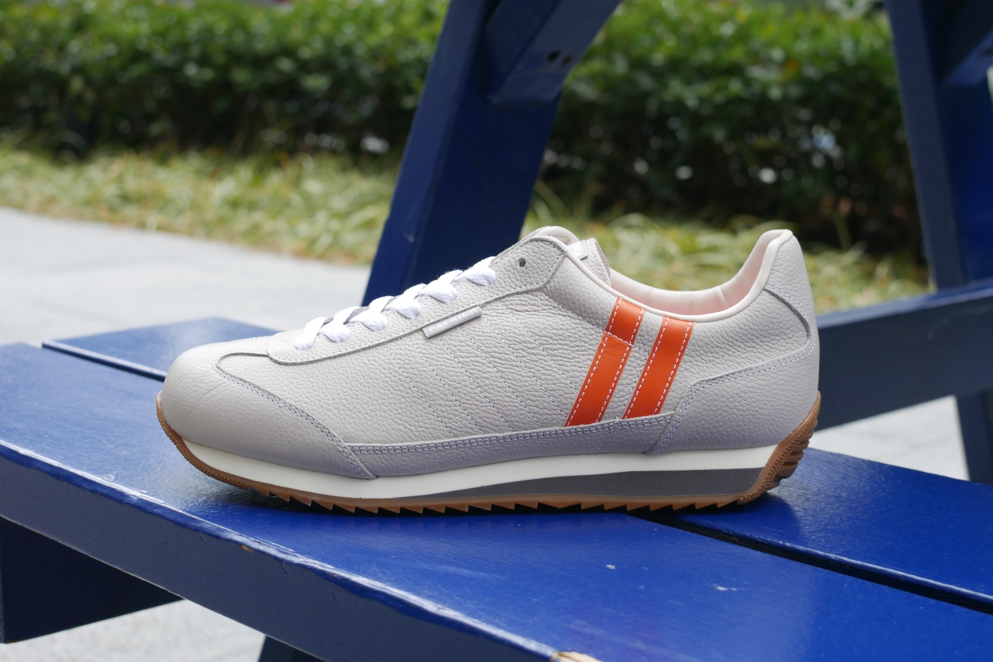 2本ラインはあえてパンチングで表現し、控えめにブランドを主張。流行を超えて履ける、数量限定モデルです。