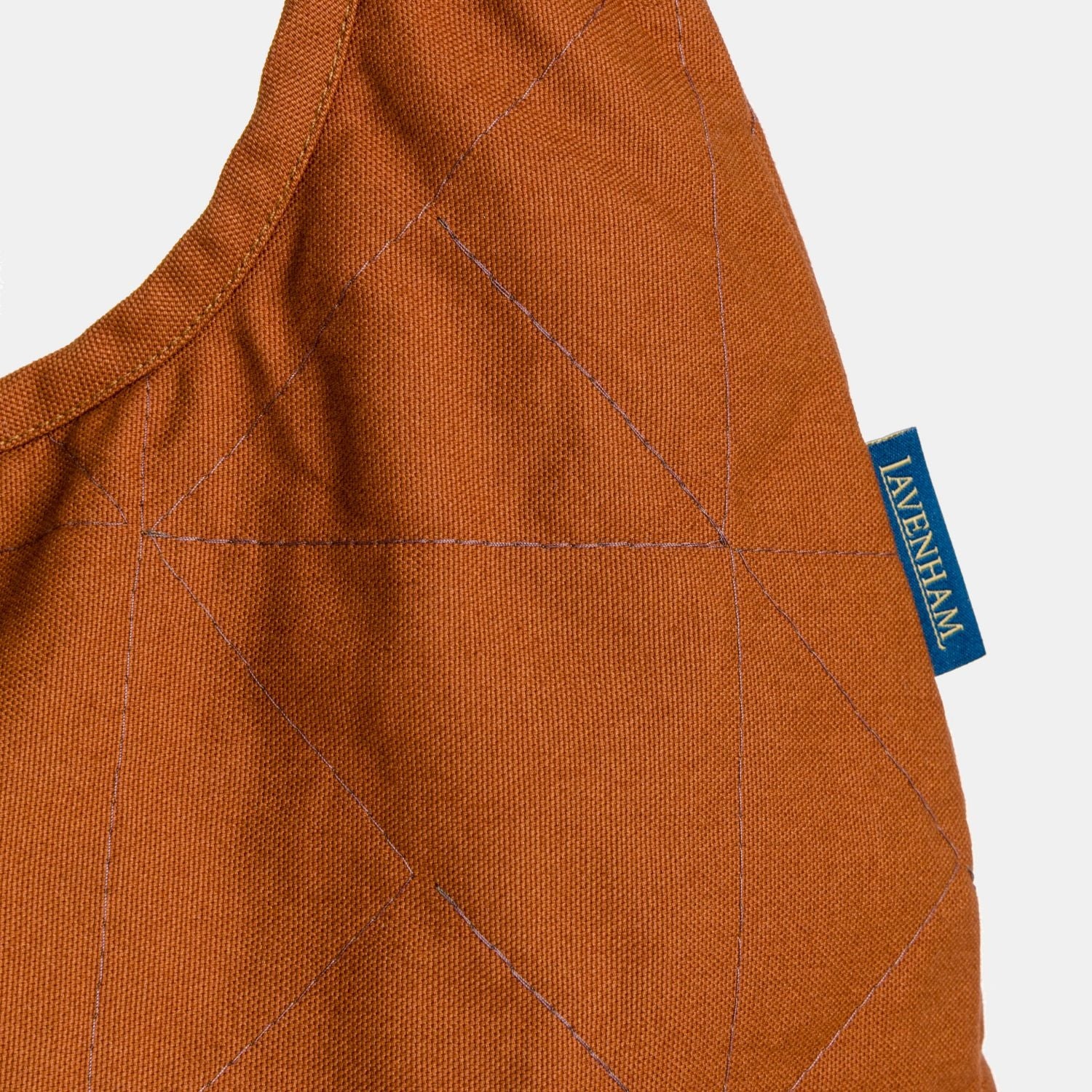 持ち手部分とバインディングに同素材の生地を使用し、内ポケット1つとLavタブをあしらい仕上げました。