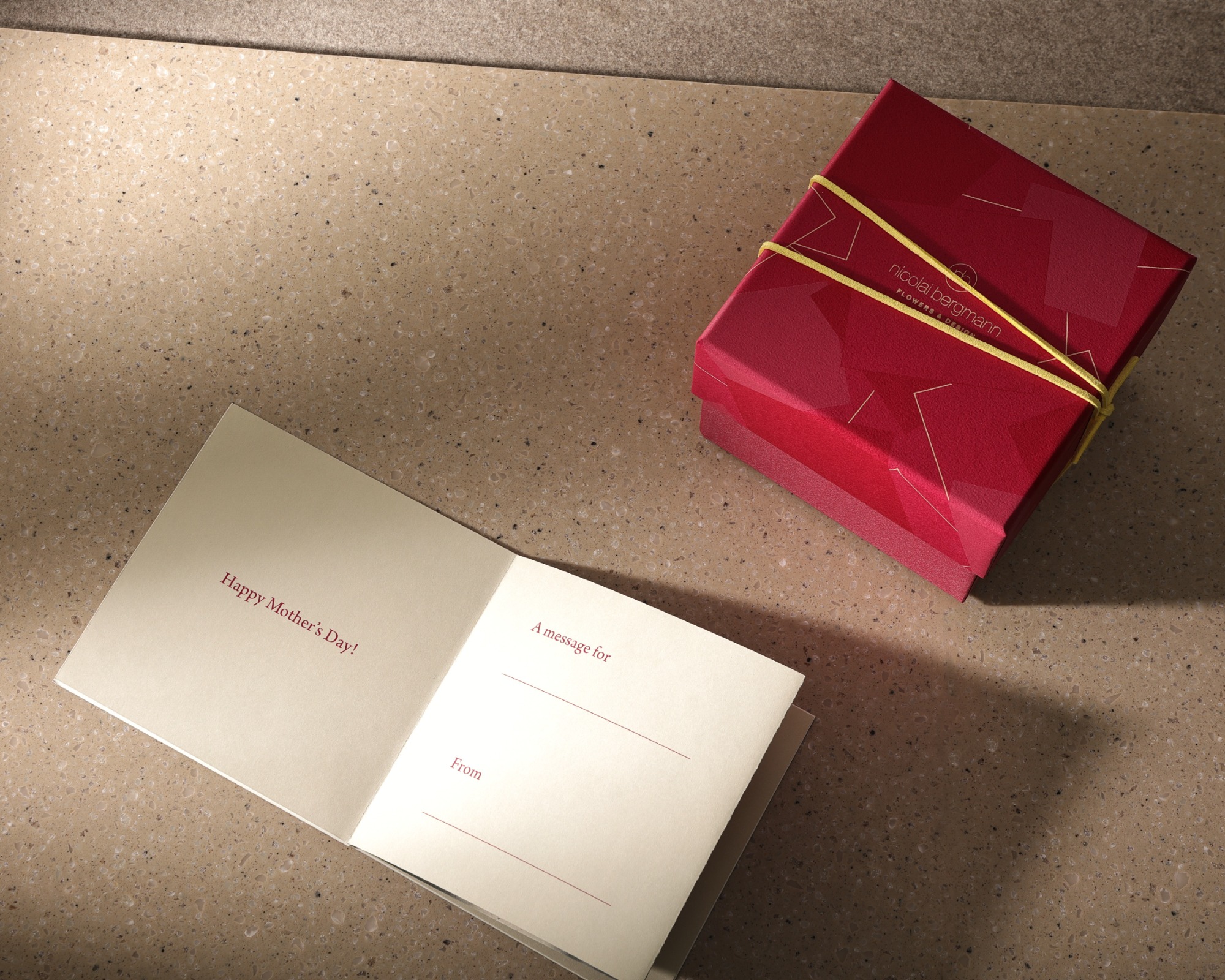 さらに、各店舗限定の早期購入特典として、4月30日(木)までにご購入いただいた方に特別なメッセージノートを数量限定でプレゼント。フラワーボックスと同じ素材の紙を使用した蛇腹折りのノートには、ニコライ バーグマンのフラワーアイテムの写真をあしらい、母の日のメッセージを書き添えてお楽しみいただけます。