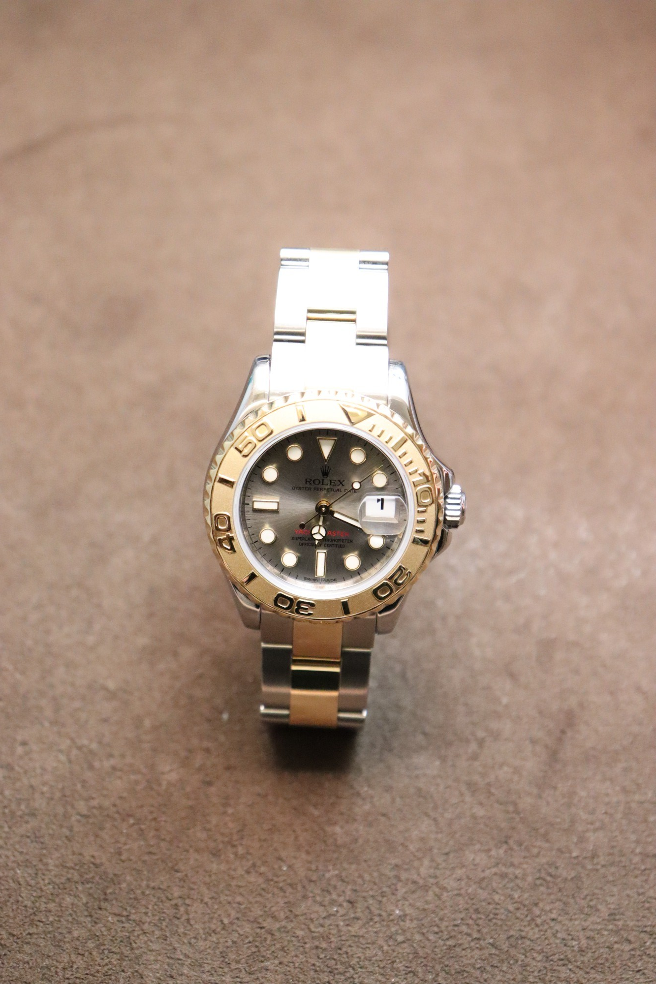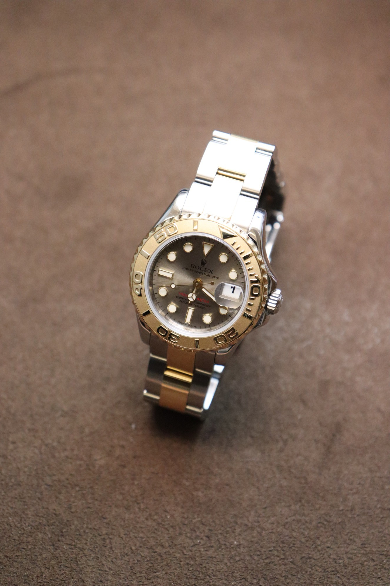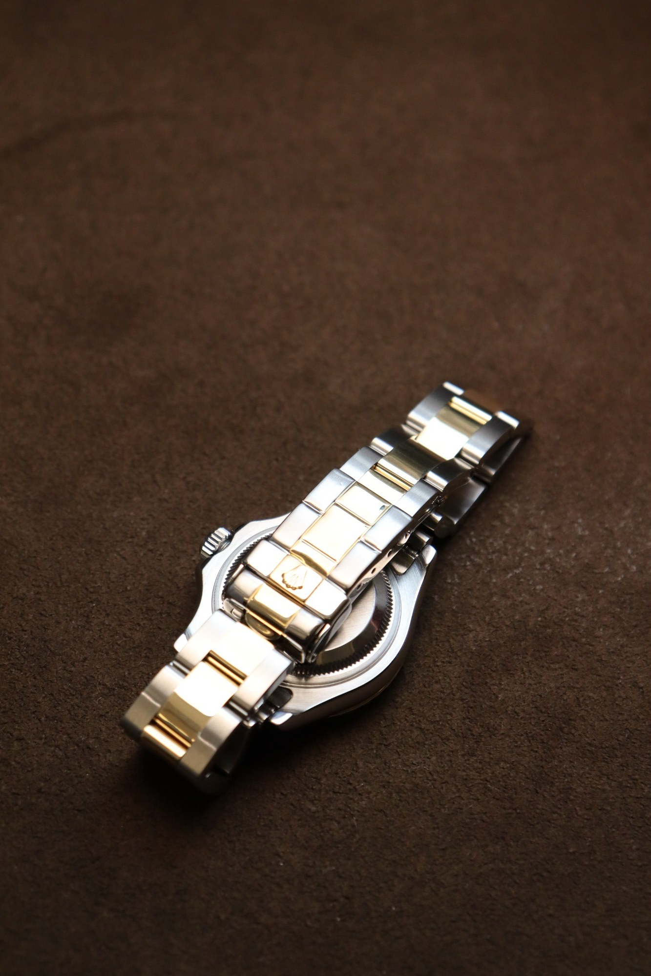 1992年に登場した「ヨットマスター」コレクションは、航行時間の読み取りと計測をしやすくする為の両方向回転ベゼルを備えたマリンスタイルのラグジュアリースポーツウォッチです。「Ref.169623」は1999年~2014年頃製造された29mm径のリファレンスで、イエローゴールドとステンレススティールを組み合わせたロレゾールモデルになります。グレーダイヤル仕様。キャリバー「2235」搭載、約48時間パワーリザーブ。当店オーバーホール済み。