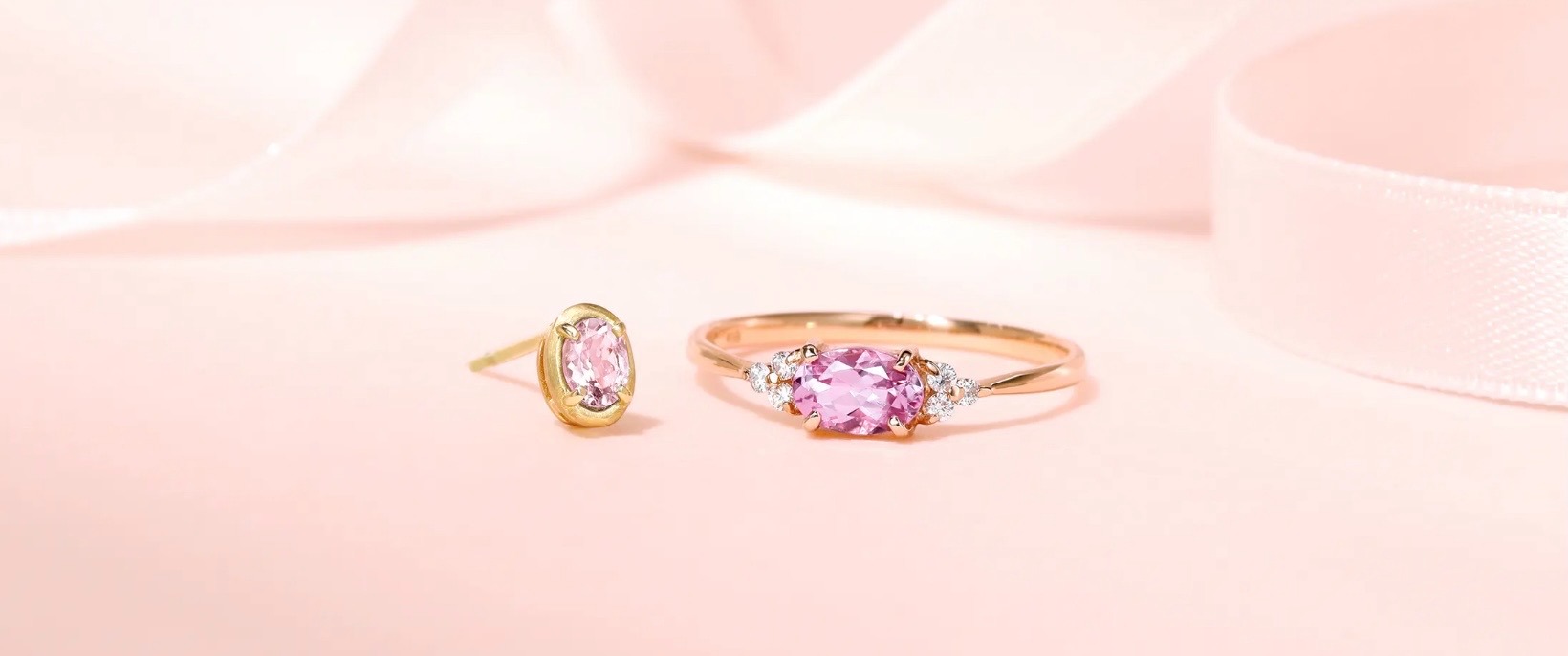 「宝石の王様」ダイヤモンド、青みを帯びた清涼感のある桜色のモルガナイトは春にぴったりな宝石です。