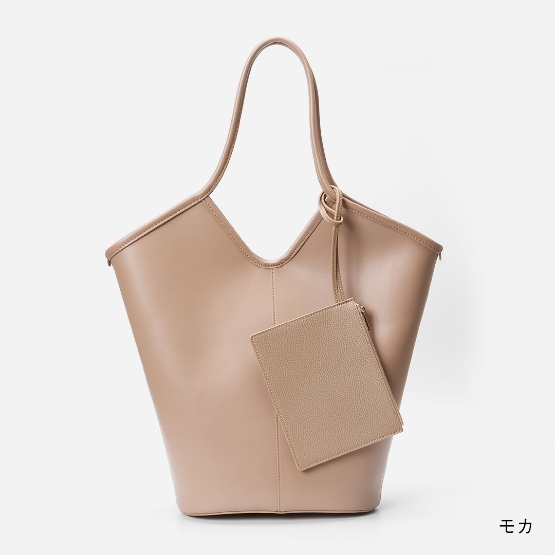 1枚仕立ての合皮で仕上げたA4サイズ対応の軽量トート。