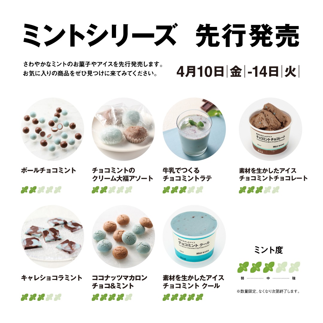 今年は、チョコミントのアイスや飲み物と、ミントの風味を楽しめるお菓子、計17種類のミント商品を発売予定です。