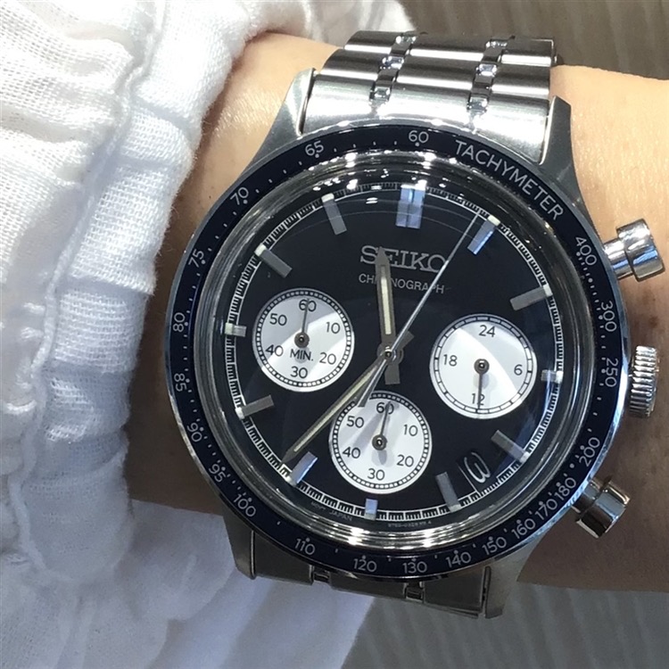 トレンドになっているヴィンテージライクな時計で、日本人の手元にしっくりくるサイズ感約39㎜の小径クオーツクロノグラフモデルです。