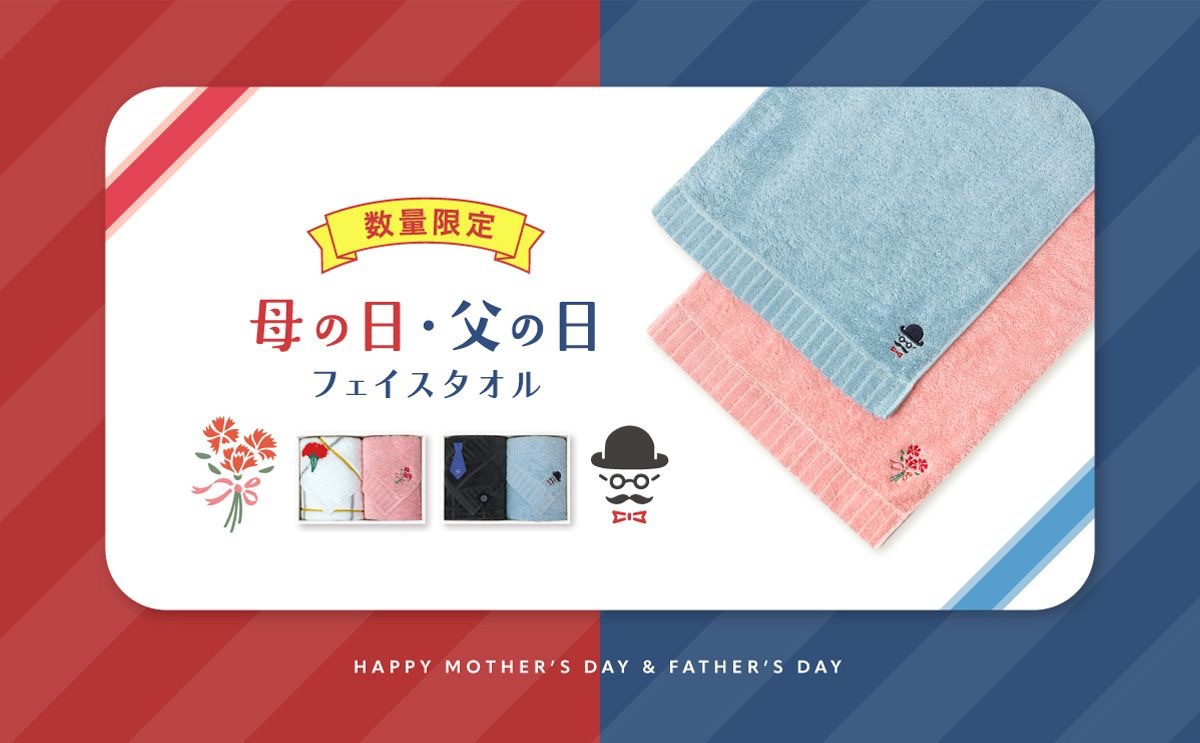 やさしいピンク色のフェイスタオルに母の日限定の