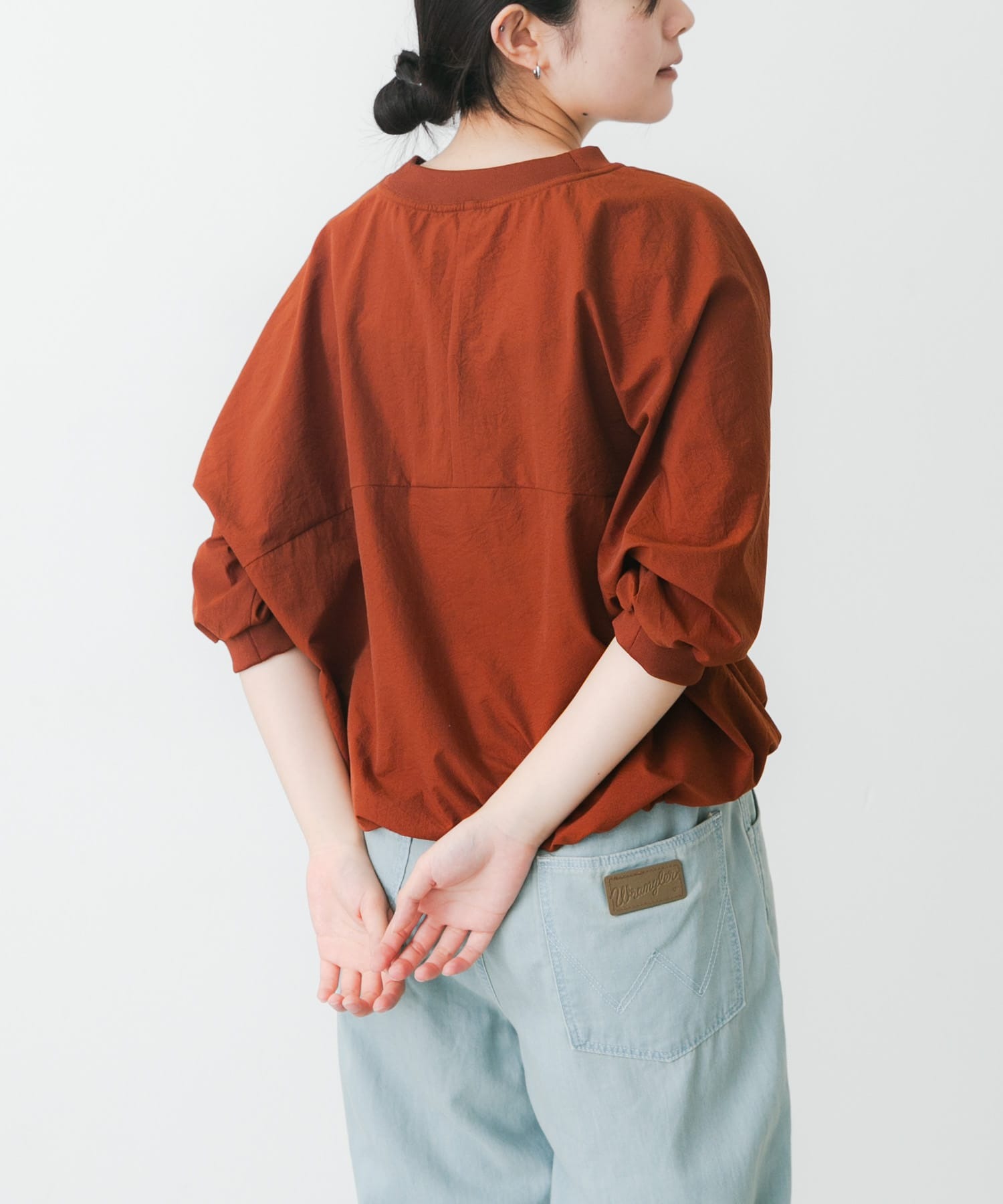 ドルマンのTシャツ型アイテム。素材の軽さとゆとりのあるデザインでさらっと着用できる1枚です。