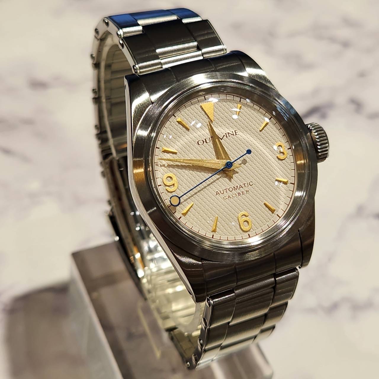 本日はアウトラインより1950年代初期に存在したハニカム文字盤を再現したお時計をご紹介いたします♪