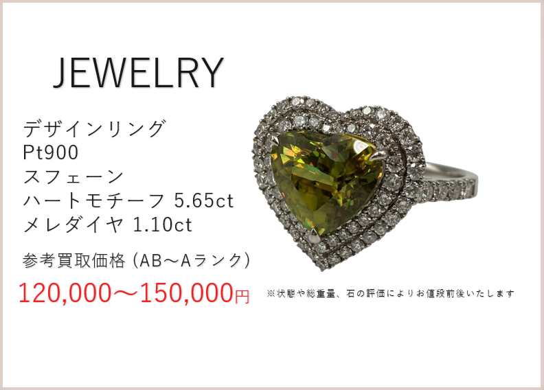 NEWSデザインリング Pt900 スフェーン ハートモチーフ 5.65ct メレダイヤ 1.10ct 高価買取北館 5FBestLifeUP -