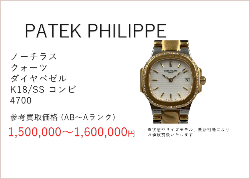 NEWSパテックフィリップ ノーチラス クォーツ ダイヤベゼル K18/SS 4700 高価買取北館 5FBestLifeUP -